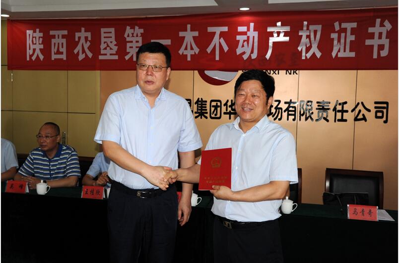 省不動產登記局局長王文,陜西糧農集團黨委副書記、總經(jīng)理、省農墾集團黨委書記、董事長王桂欣,渭南市、華陰市國土資源局、不動產登記局以及省屬農場有關領導等參加了證書頒證儀式。